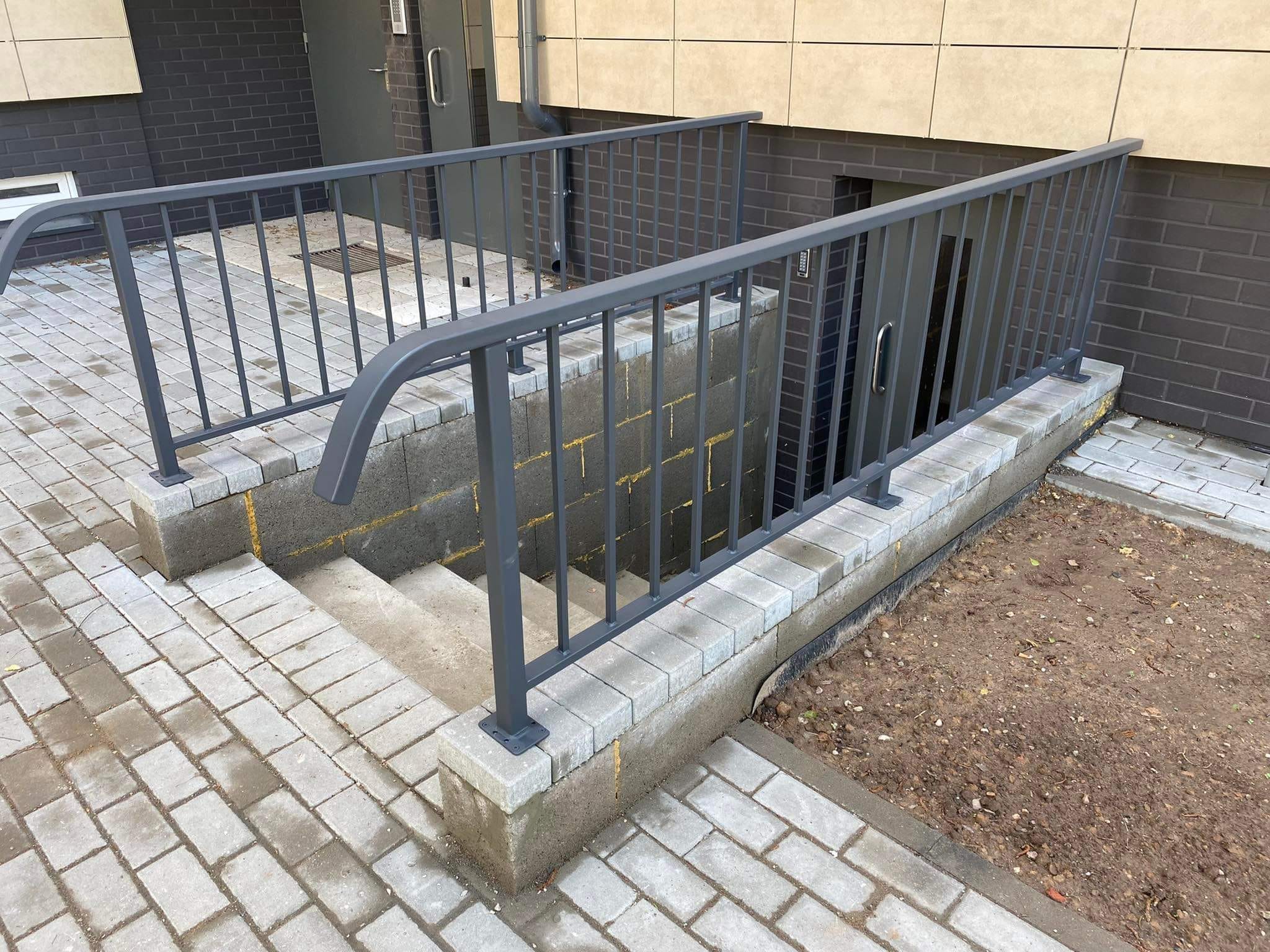 Metaliniai vidaus ir lauko turėklai pagal individualius kliento poreikius, galimybė pasirinkti nerūdijančio plieno ranktūrį.